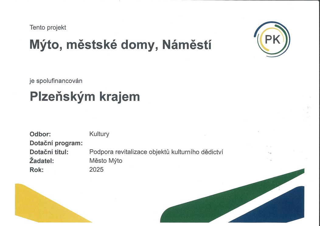 oprava fasád domů byla provedena s finančním příspěvkem Plzeňského kraje.