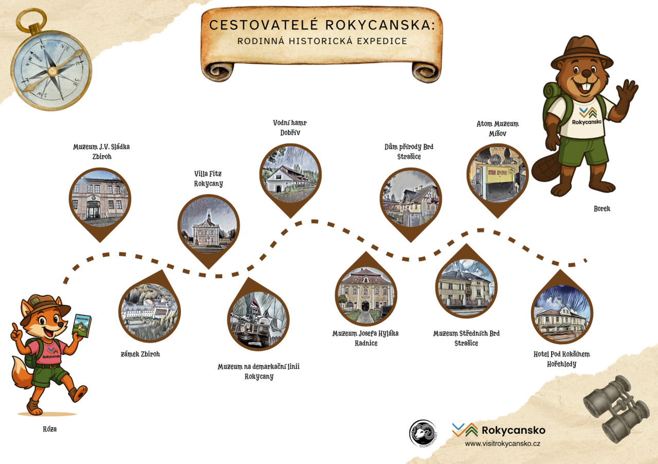 Destinační společnost Rokycansko připravila na léto zábavnou poznávací hru Cestovatelé Rokycanska, kterou provázejí maskoti Borek z Brd a Róza z Rokycan. Cílem je navštívit zajímavá místa v regionu a načítat QR kódy přes mobilní aplikaci Rokycansko.